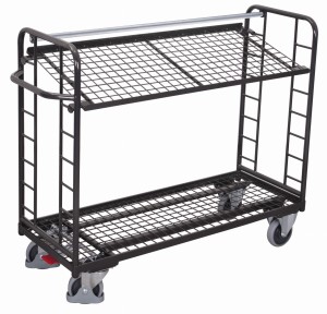 Wózek piętrowy z 2 półkami z siatki, RAL 7016 sw-640.223/AG — VARIOfit