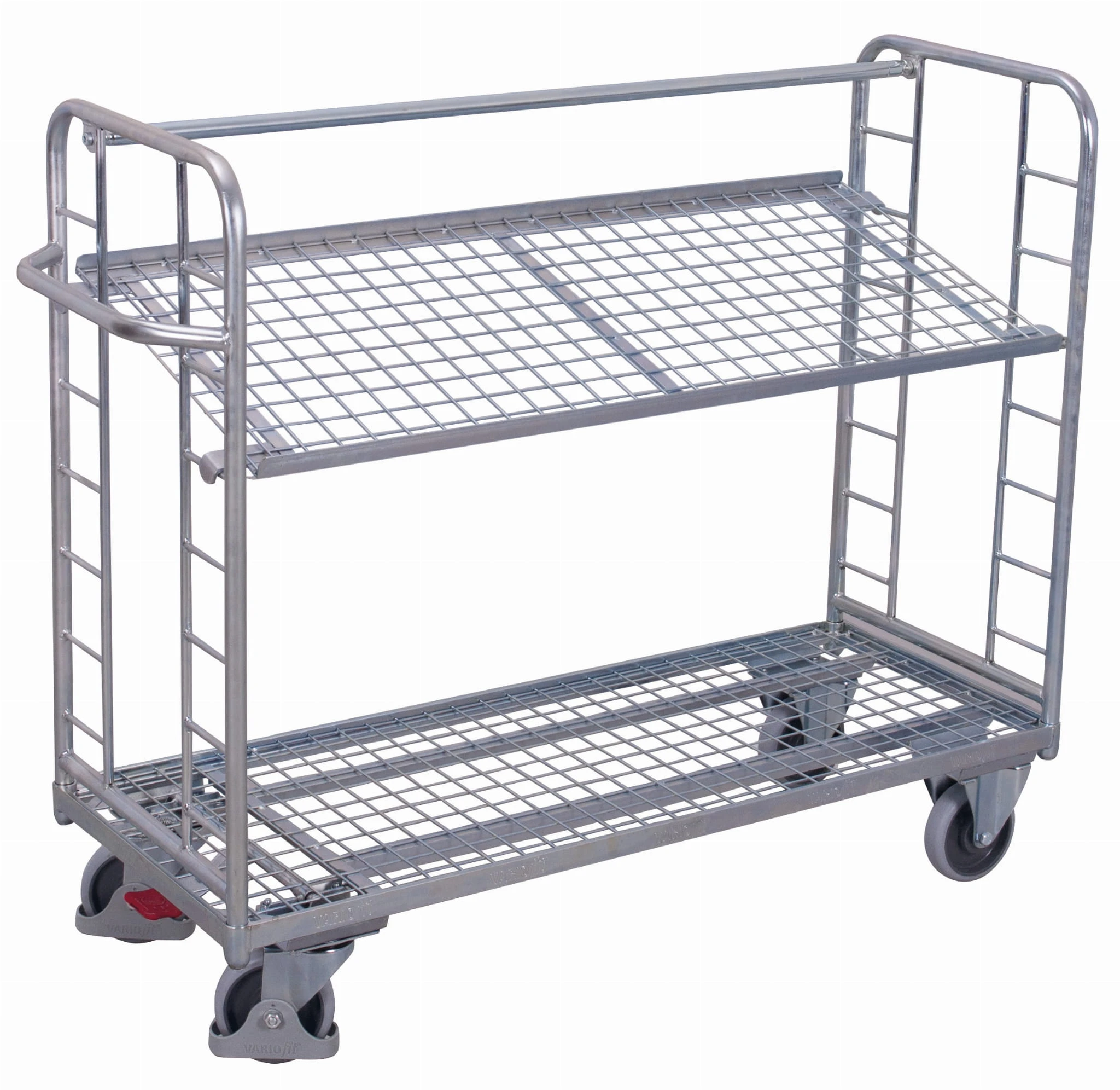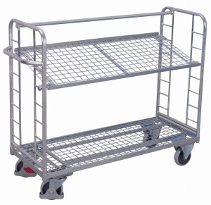 Wózek piętrowy z 2 półkami z siatki, ocynkowany sw-540.224 — VARIOfit
