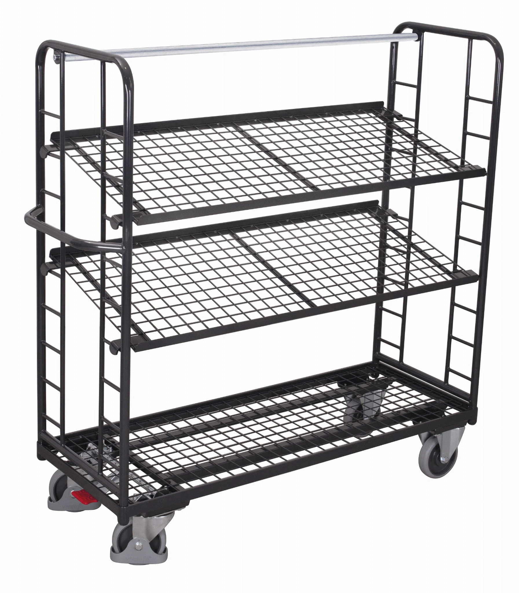 Wózek piętrowy z 3 półkami z siatki, RAL 7016 sw-540.225/AG — VARIOfit